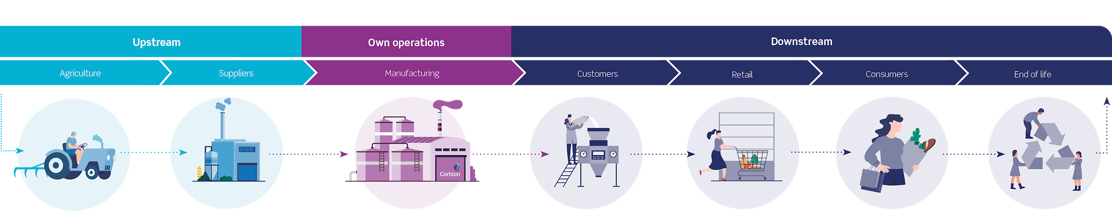 As a B2B ingredient supplier, Corbion operates by sourcing, processing, and distributing agriculturally-derived solutions to customers in markets such as food, home and personal care, animal nutrition, supplements, pharmaceuticals, medical devices, and bioplastics. Throughout our value chain and by way of our solutions, we aim to positively contribute to the United Nations Sustainable Development Goals.